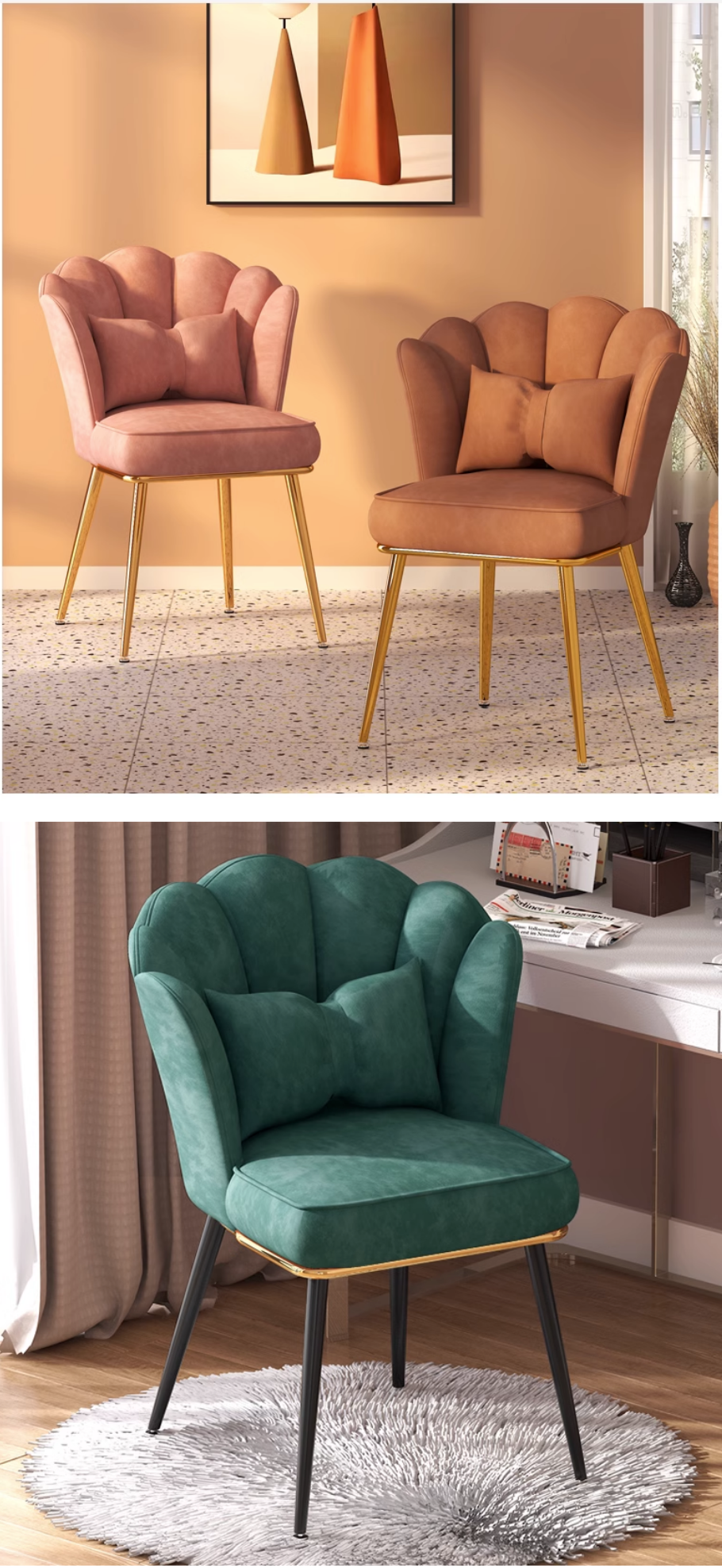 新款家用舒適靠背花瓣椅(粉色黑腿)(尺寸:48*40*82CM)