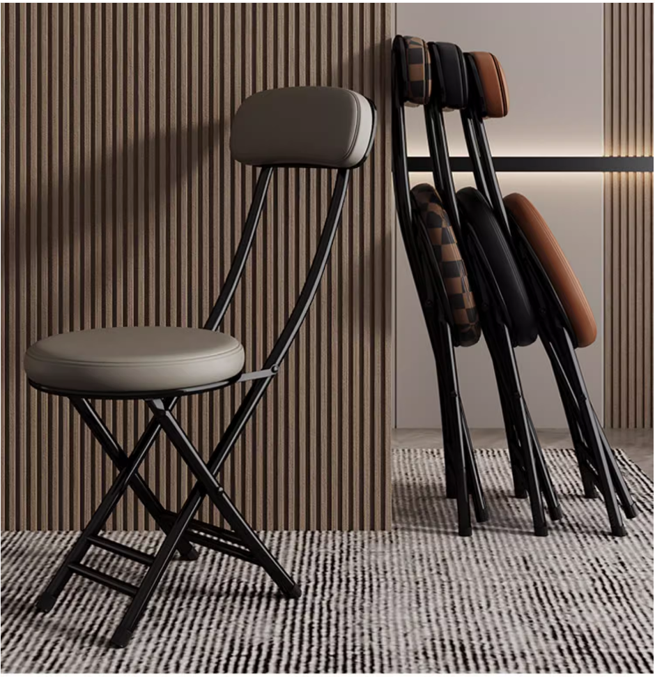 新款家用折疊靠背餐椅(黑架灰色)(尺寸:展開高76CM,坐寬30CM)