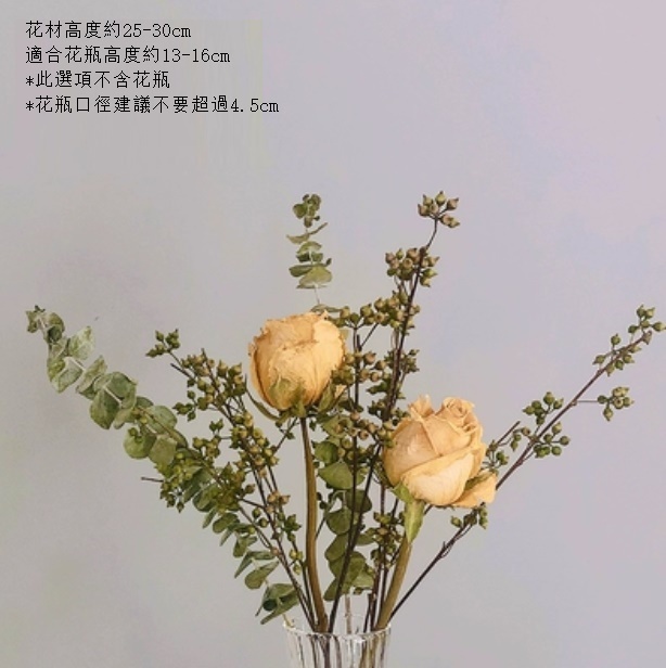 新款家居擺設插花(不含小肚瓶 蘋果葉黃玫瑰)