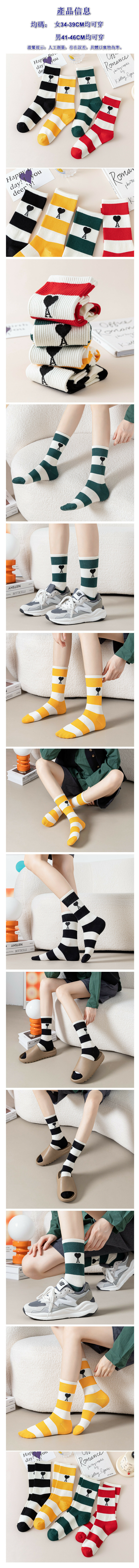 新款橫條紋愛心字母男女中筒長襪 棉襪【深墨綠】【均碼】