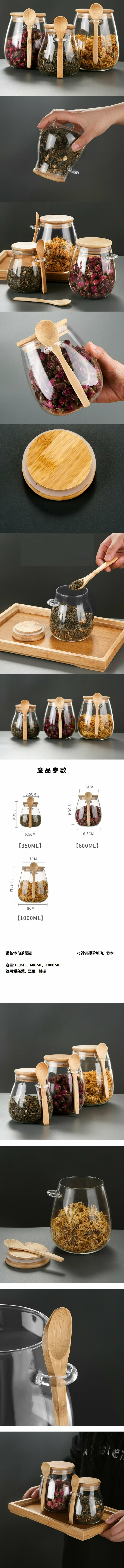 新款家用玻璃密封罐(茶葉罐帶木勺【600ml】)