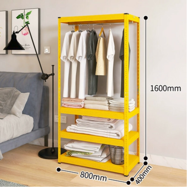 新款鐵藝色彩 組合櫃 衣櫃 衣帽架 多層儲物櫃【80x40x160cm】單層掛衣+3層 黃色