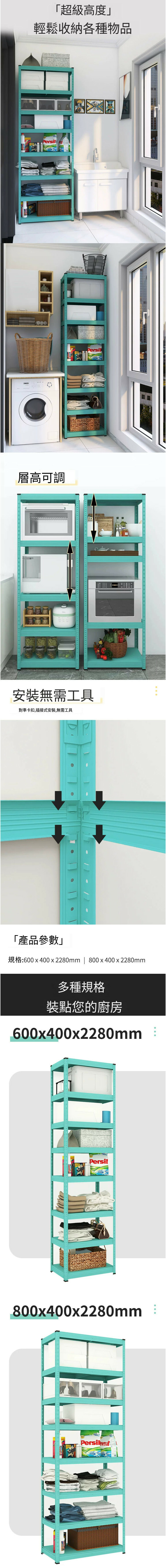 新款鐵藝色彩 厨櫃 書架 鞋櫃 浴室儲物櫃 貨架【60x40x228cm】8層 黑色
