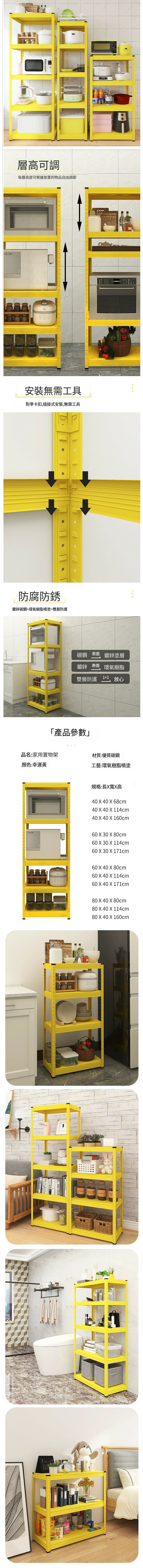新款鐵藝色彩 厨櫃 書架 鞋櫃 浴室儲物櫃 貨架【80x40x80cm】黄色3層