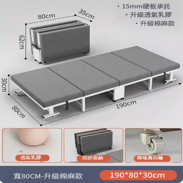 新款鐵藝傢具 摺疊床 兒童床 休閑床 【棉麻布+乳膠款+白架】80x190cm
