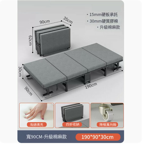 新款鐵藝傢具 摺疊床 兒童床 休閑床 【棉麻布+海棉款+黑架】90x190cm