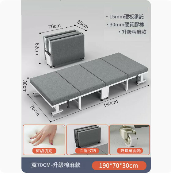 新款鐵藝傢具 摺疊床 兒童床 休閑床 【棉麻布+海棉款+白架】70x190cm
