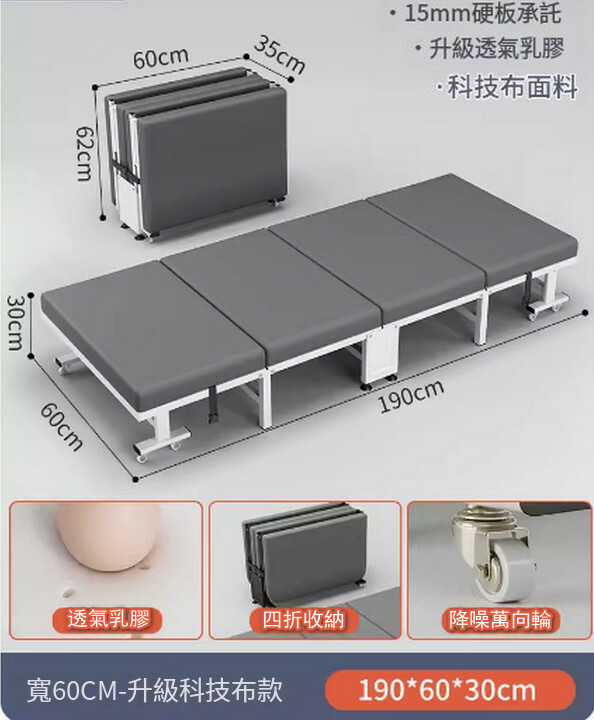 新款鐵藝傢具 摺疊床 兒童床 休閑床 【科技布+乳膠款+白架】60x190cm