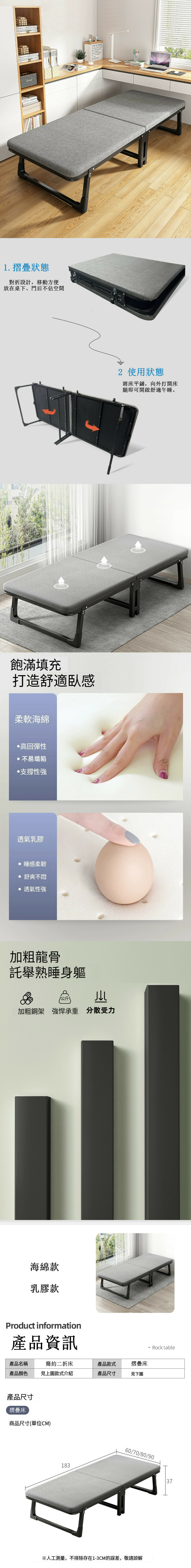 新款鐵藝傢具 摺疊床 移動床 休閑床【特價款】方管+海棉墊183x90x37cm