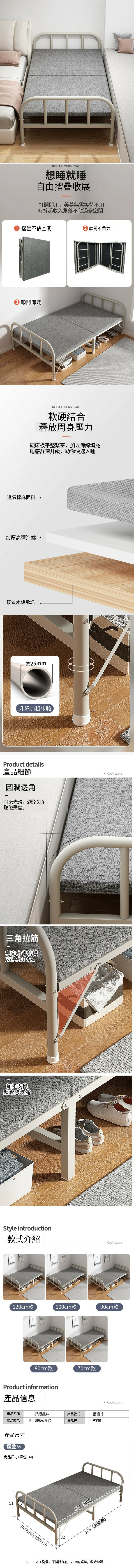 新款鐵藝傢具 摺疊床 移動床 休閑床【特價薄鐵款】方管+靠背軟包+海棉墊190x90cm