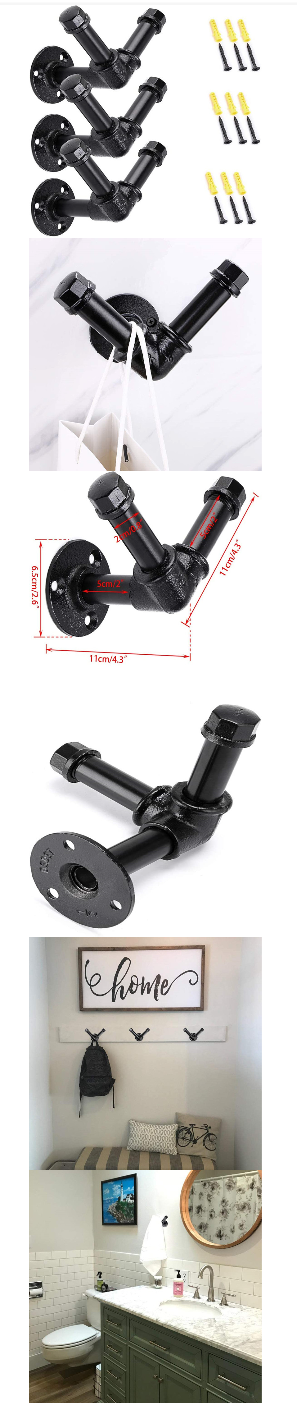 新款鐵藝壁掛收納置物架衣帽鉤(黑色,11*11cm)