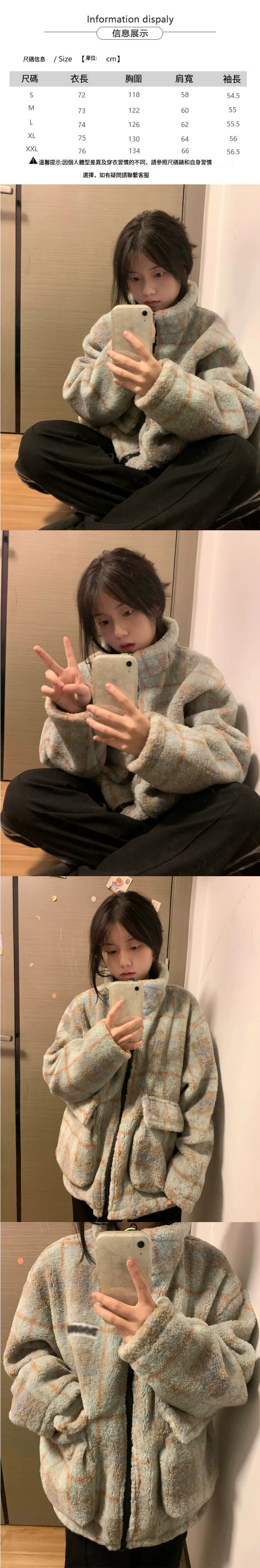 新款日系格紋立領羊羔毛外套(灰色)(S/M/L/XL/2XL下單後與客服聯系發貨的尺碼)