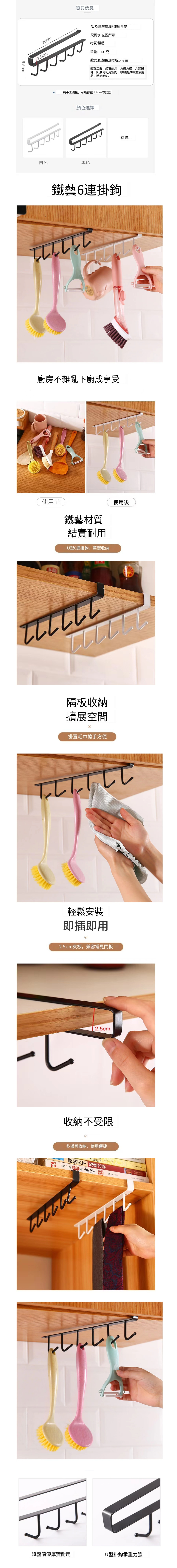 新款廚房鐵藝無痕免釘挂鉤 多功能衣櫃排鉤整理架掛架(黑色)