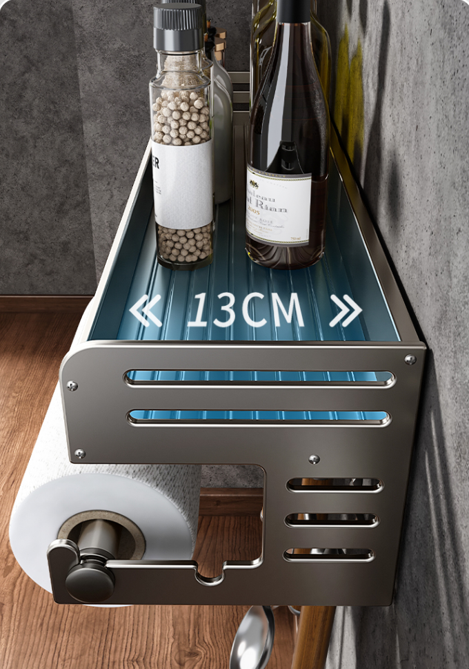 新款廚房多功能收納排鉤(槍灰6鉤)(尺寸:30*2.5CM)