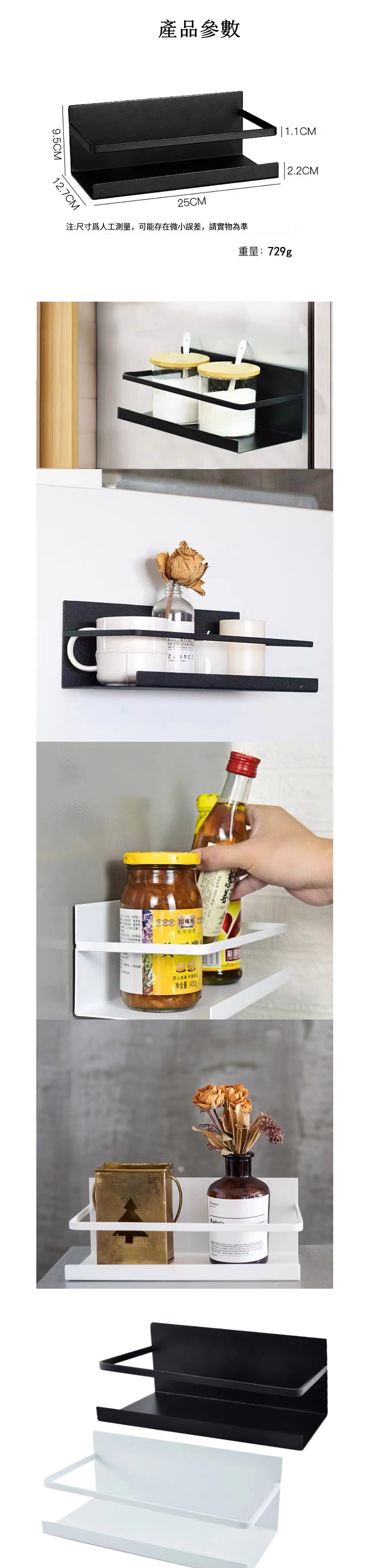 新款廚房冰箱側面磁吸 免安裝多功能調料架 壁掛式收納架(黑色)