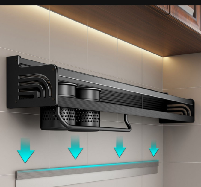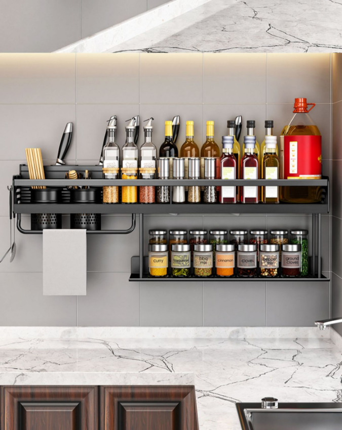 新款廚房用品多功能壁掛式置物架(70cm三筷筒|4刀槽|10掛鉤|毛巾桿)(尺寸:70*14*9.5CM)