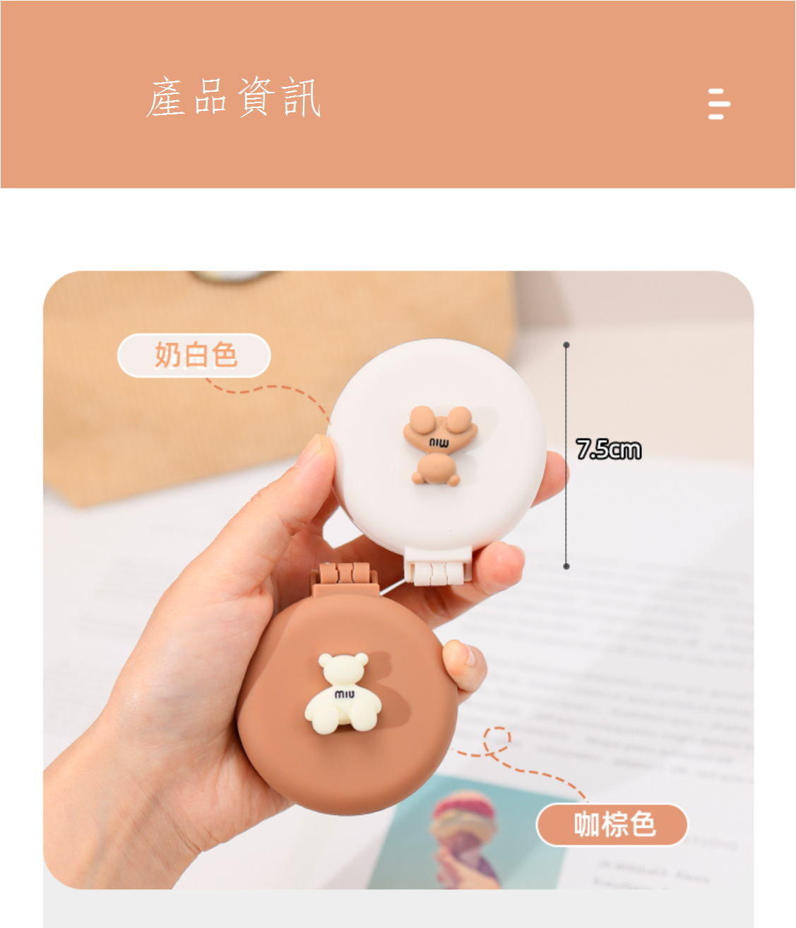 新款小貓折疊按摩梳鏡(咖棕色)