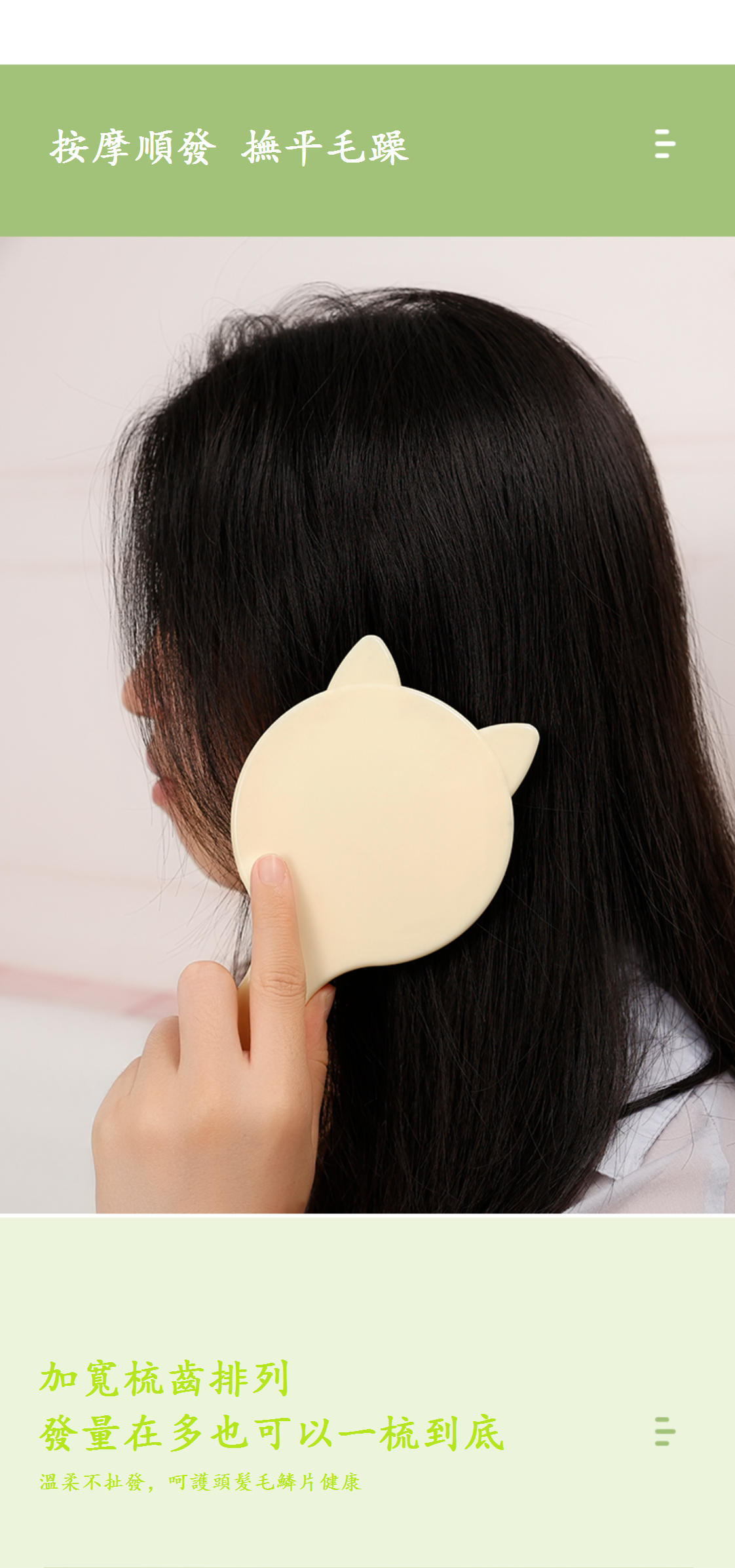 新款小貓按摩梳(米黃色(送梳子清理爪+小花發繩))