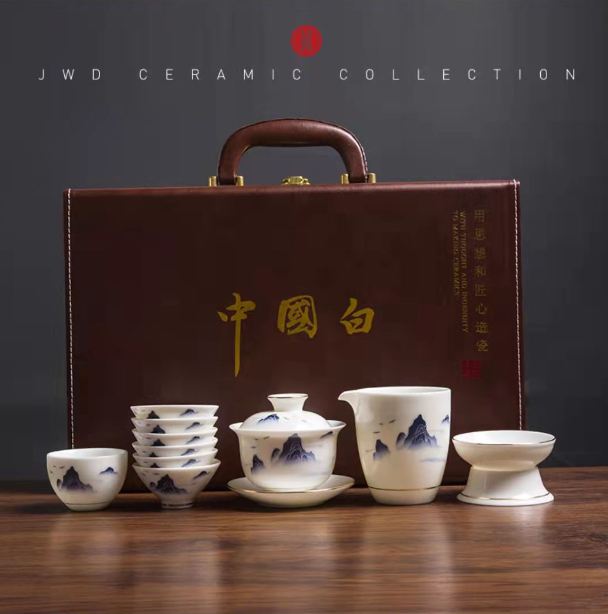 新款功夫茶具(山水鬥笠杯皮套禮盒 )