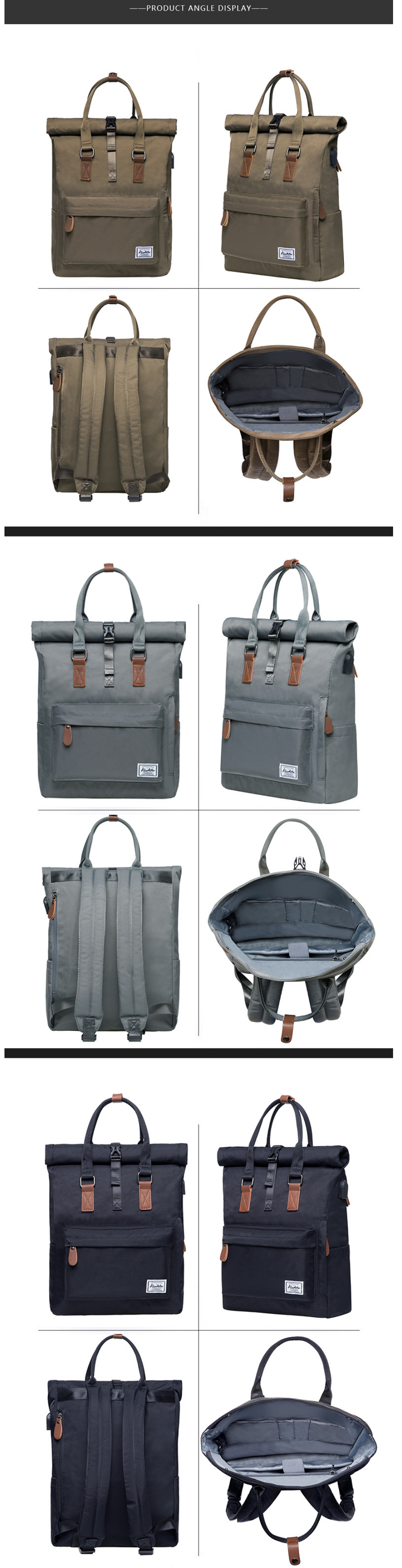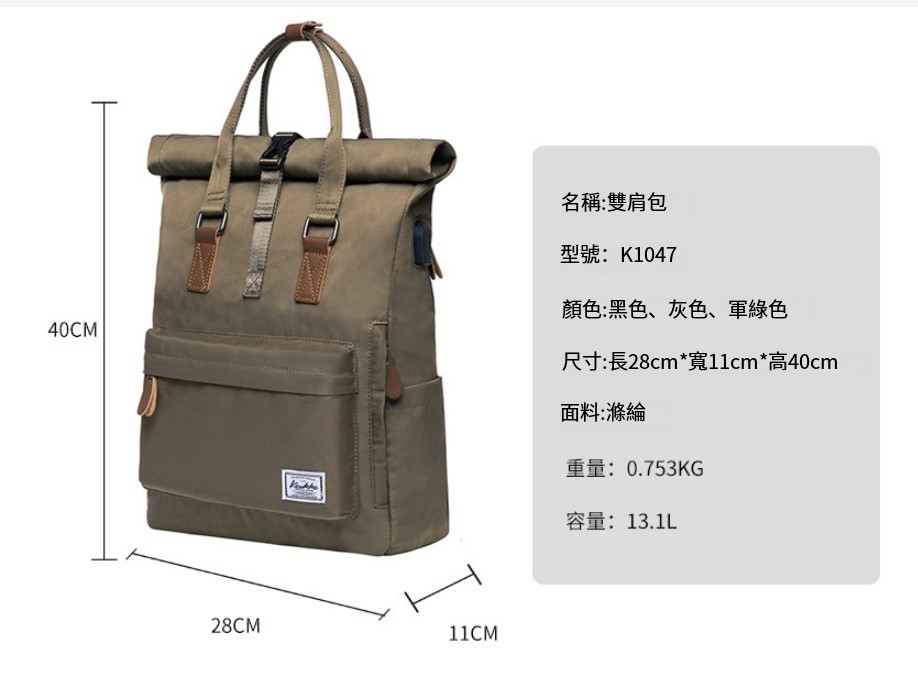 新款男女適用手提電腦包 登山背包 書包【軍綠色】