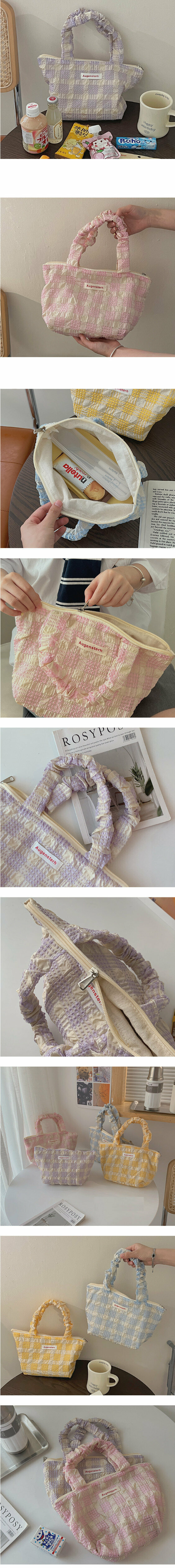 新款大容量手提飯盒包(薄荷藍格紋)