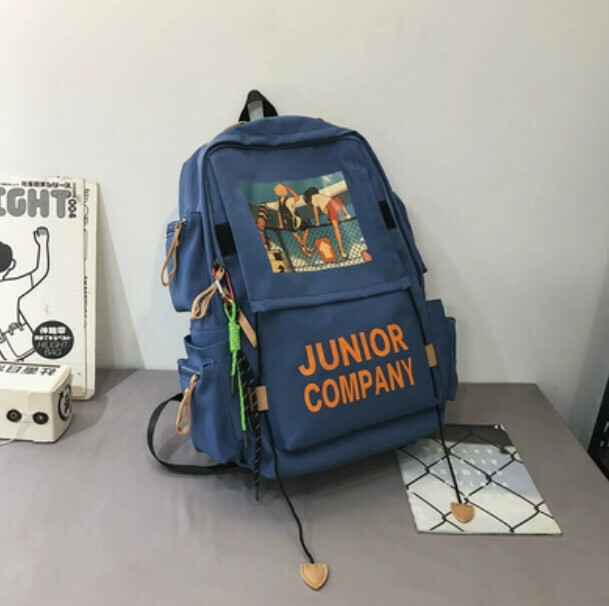 新款大容量高中生潮流背包(藍色 帶鈎子挂件)