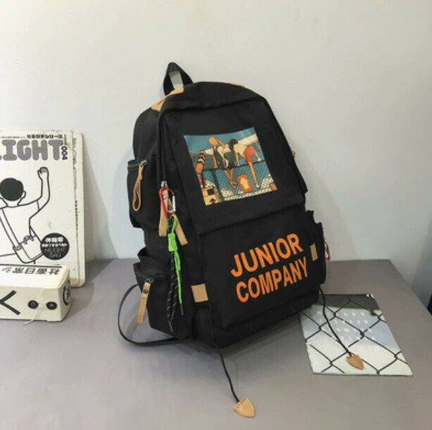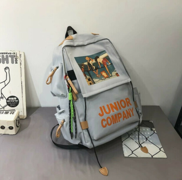 新款大容量高中生潮流背包(灰色 帶鈎子挂件)