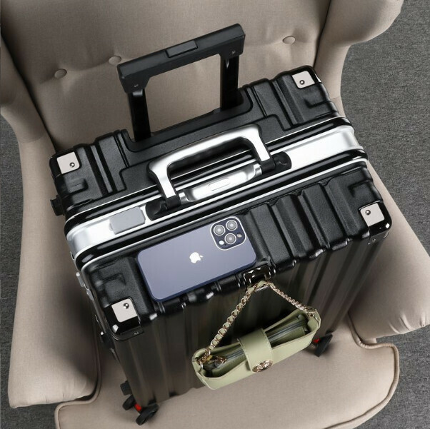 新款大容量拉杆行李箱【22寸】【加厚鋁框款-酒紅色】