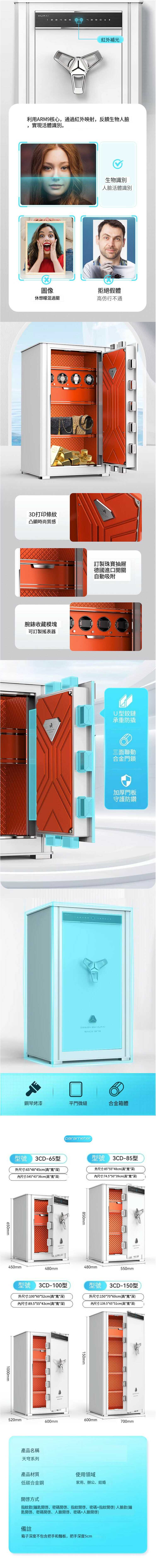 新款家用大型密碼指紋夾萬(高65cm-密碼/人臉-霞光柳丁-豪華內飾)