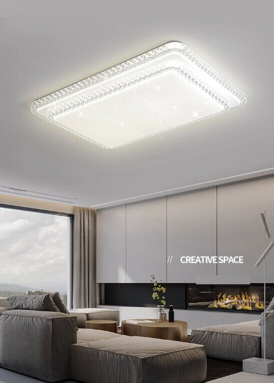 新款led水晶吸頂燈(星鑽方形60*40cm)(無極調光)
