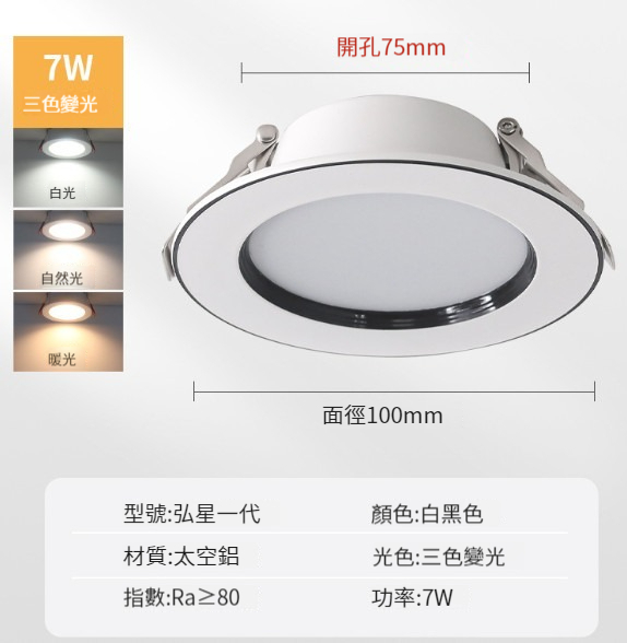 新款LED筒燈【飛燕白色-7瓦三色】
