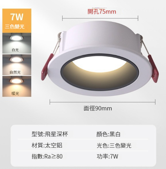 新款LED筒燈【弘星銀黑款-7瓦三色】
