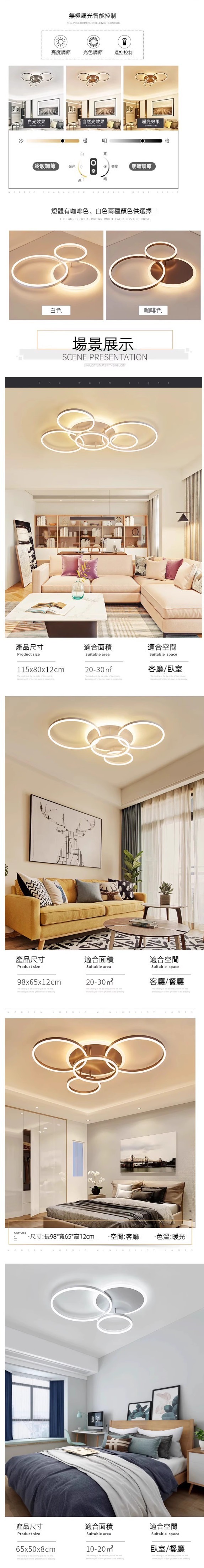 新款LED圓形吸頂燈(咖啡色/2圈/55*40*H6cm無極調光-36w)