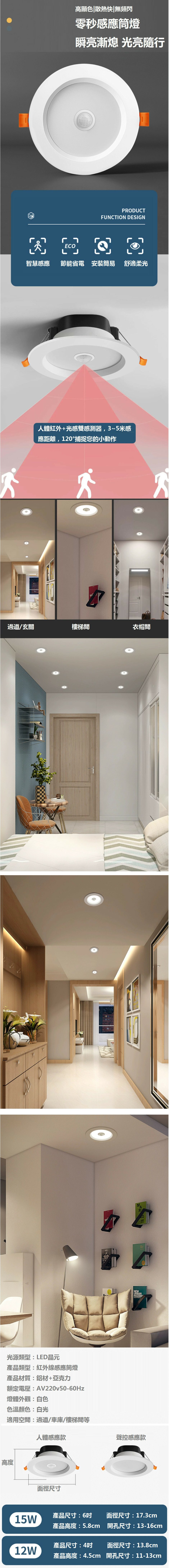 新款led智慧感應嵌入式天花燈(12W白光【人體感應+帶光控】孔11-13cm)
