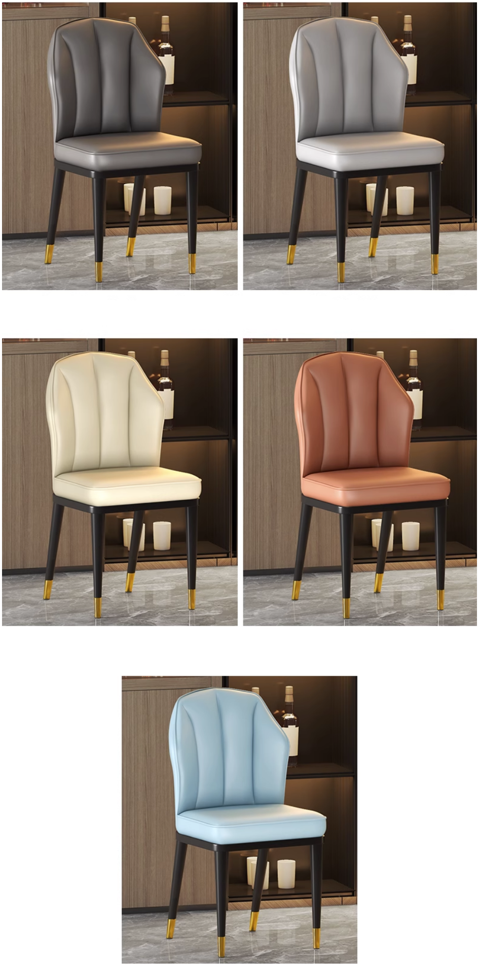 新款輕奢舒適靠背扇貝餐椅(米白色/黑色腿)(尺寸:46*46*92*43CM)