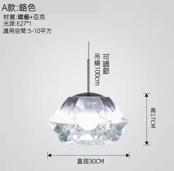 新款輕奢鑽石形吊燈(A款鉻色-三色調光)
