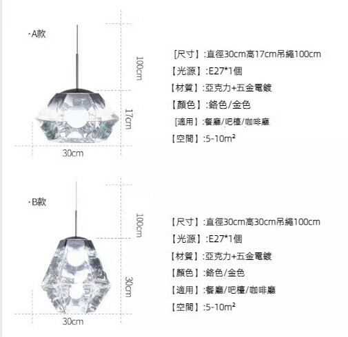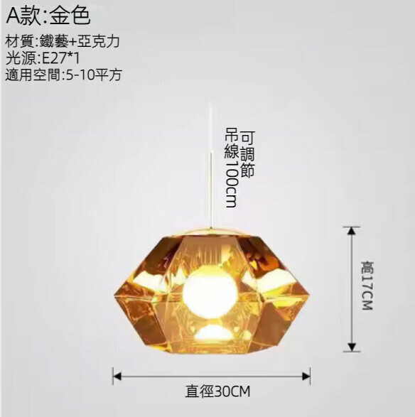 新款輕奢鑽石形吊燈(A款金色-三色調光)