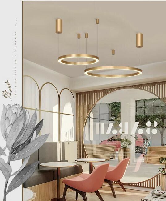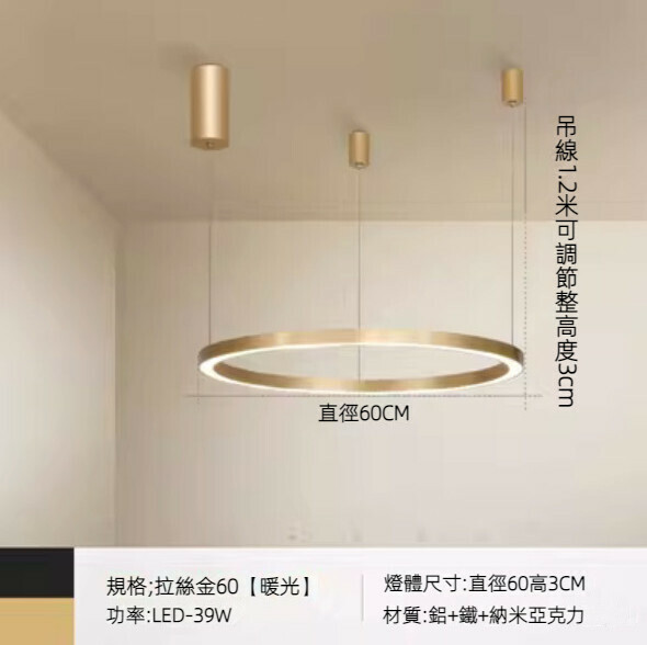 新款輕奢led圈圈吊燈(拉絲金三式單層60cm暖光)