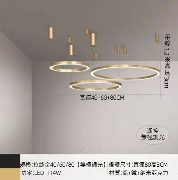 新款輕奢led圈圈吊燈(拉絲金三式三層80+60+40無極調光)