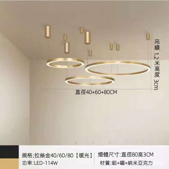 新款輕奢led圈圈吊燈(拉絲金三式三層80+60+40暖光)
