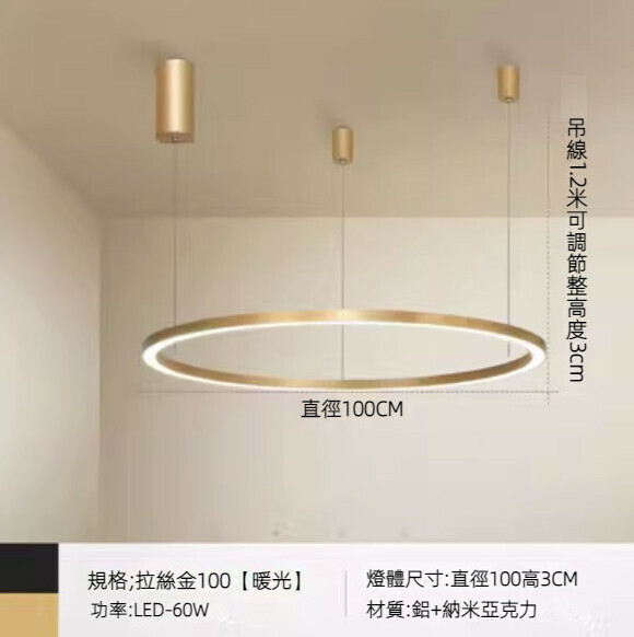 新款輕奢led圈圈吊燈(拉絲金三式單層100cm暖光)