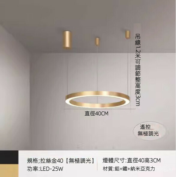 新款輕奢led圈圈吊燈(拉絲金三式單層40cm無極調光)