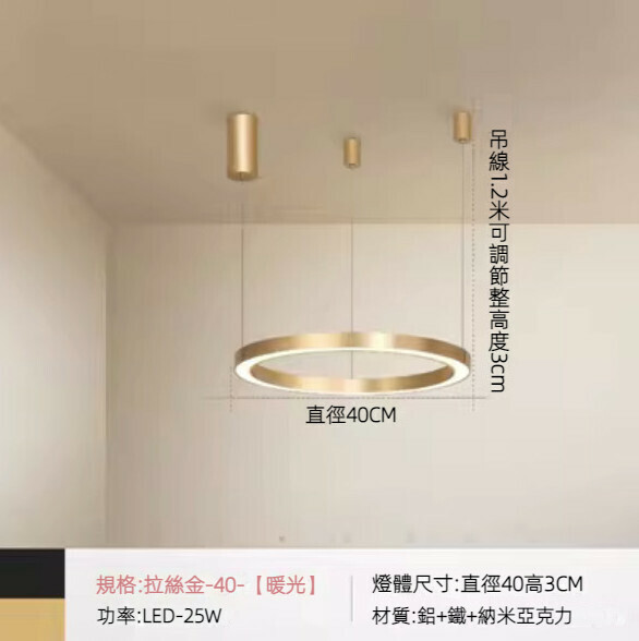 新款輕奢led圈圈吊燈(拉絲金三式單層40cm暖光)