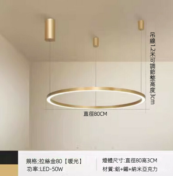 新款輕奢led圈圈吊燈(拉絲金三式單層80cm暖光)
