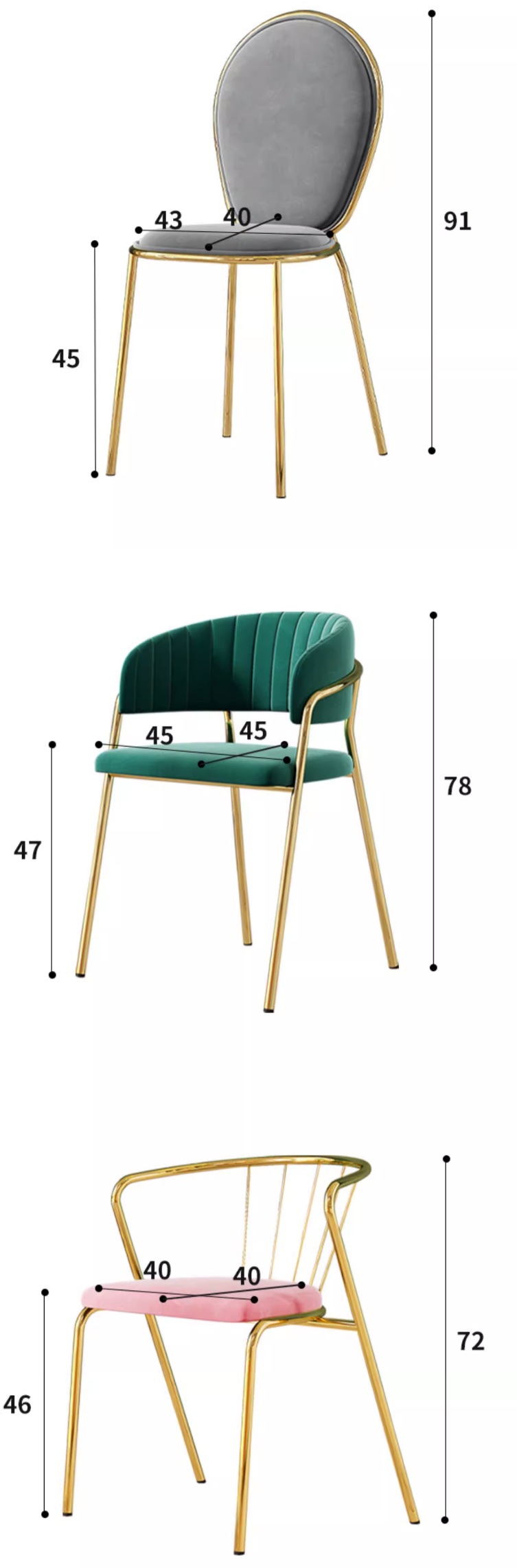 新款輕奢簡約時尚靠背餐椅(02款*藍色絨布*鍍鈦金椅架)(尺寸:43*40*91*45CM)