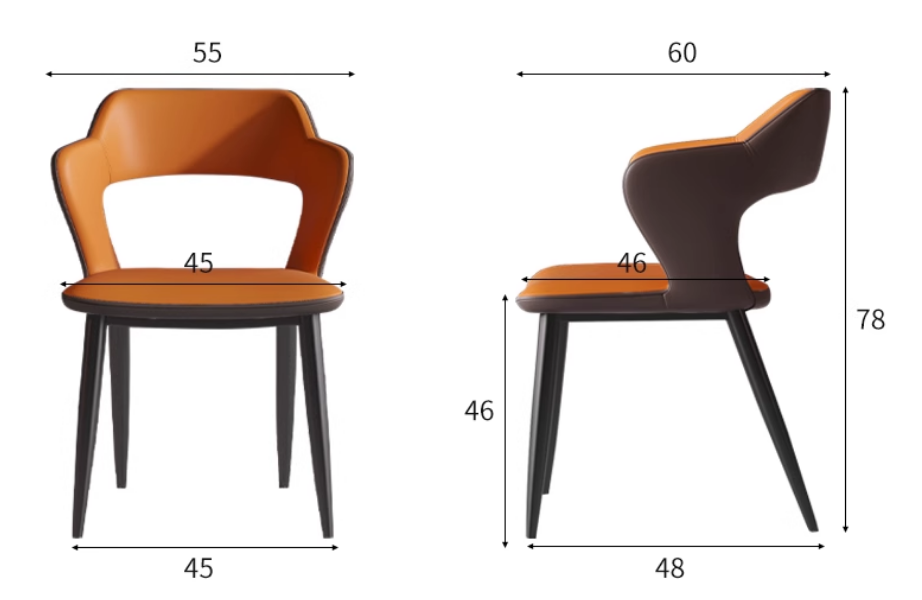 新款輕奢靠背軟包扶手椅(黑色+咖啡色/納帕皮革)(尺寸:45*78*55CM)
