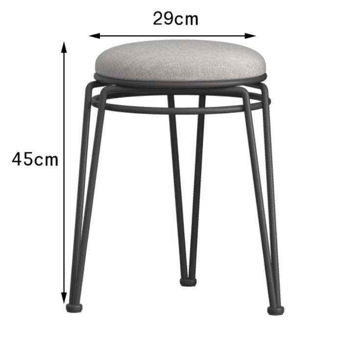 新款家用輕奢鋼筋圓凳(PU黑色/噴金腿)(尺寸:45*29CM)
