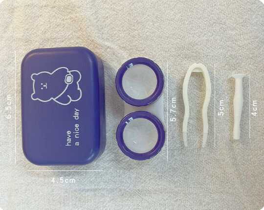 新款輕便隱形眼鏡收納盒(淺紫色背包小熊+綠色背包小熊)