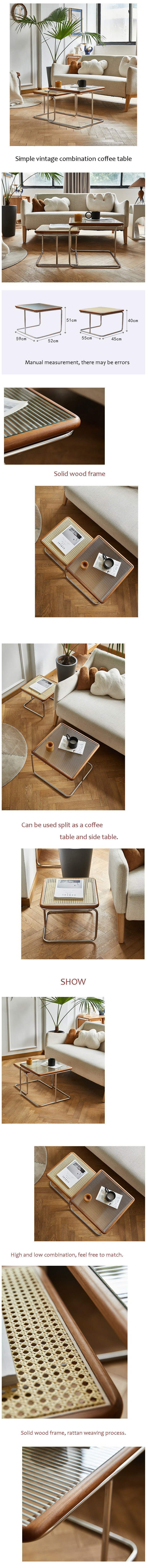 新款客廳茶几復古咖啡桌梳化床邊桌(黑色一套大桌+小桌)