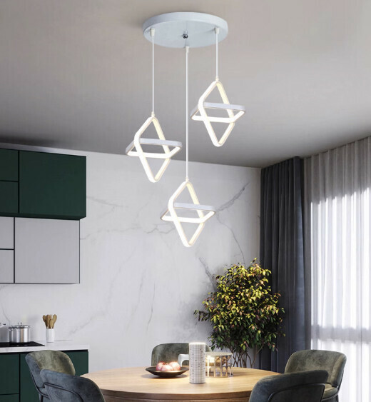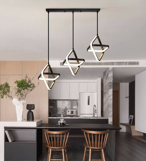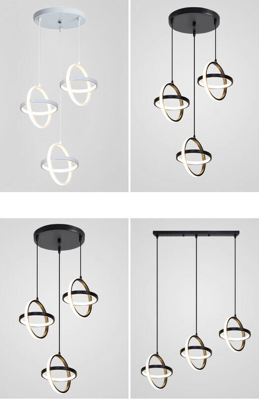 新款長條餐廳吊燈(3頭長盤黑色雙層圓圈)(三色變光)